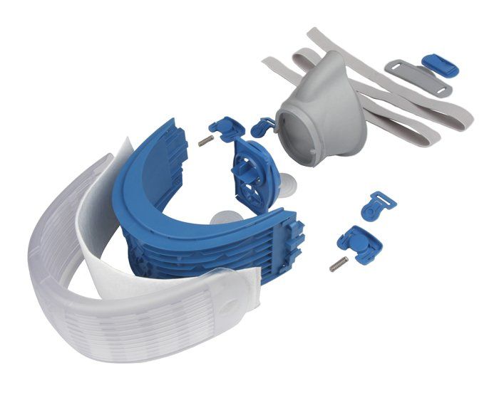 Le corps est conçu de sorte que la grille, la sangle, le bloc de valves et la visière optionnelle puissent être facilement posé et enlevés par simple clipsage.